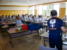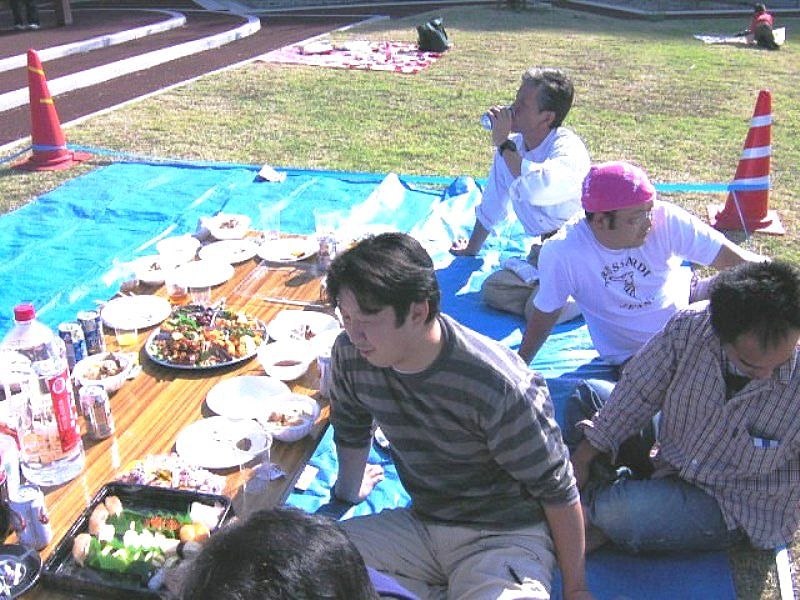 体育館に会場を移して運動不足解消にと各課対抗のソフトバレーボール大会、汗をかいた大会後は会社の駐