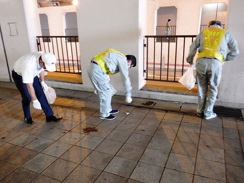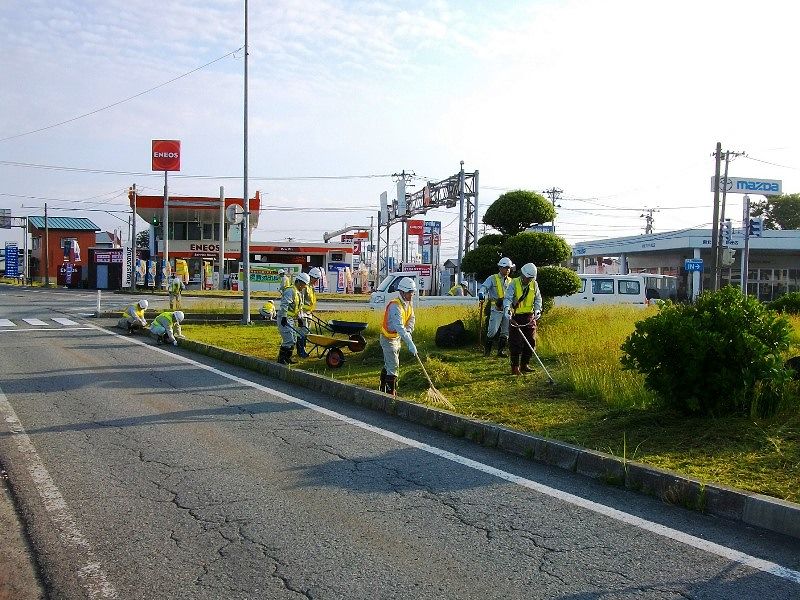 協力し、当社周辺の早朝除草と掃除を行いました。 |
