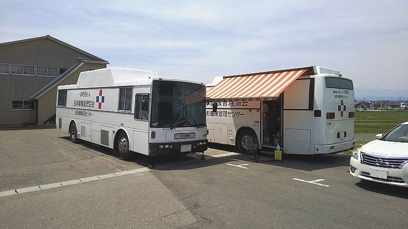 理センターのバスに来て頂き従業員の健康診断を行いました。また都合で受診できなかった者は後日医療機