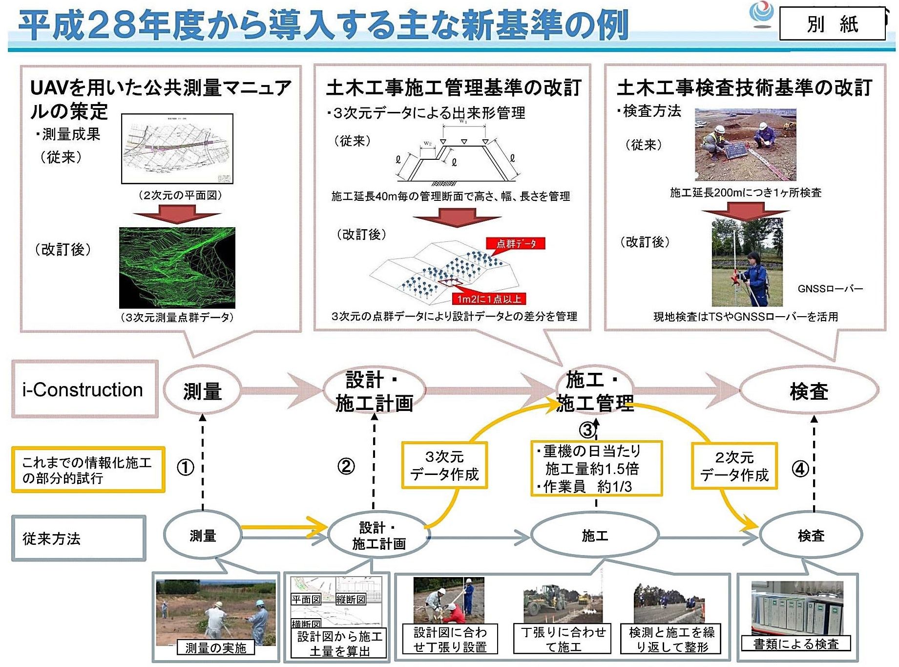 出典:国土交通省「平成28年度からi-Constructionで建設現場が変わります!」 ↑クリックで拡大 |