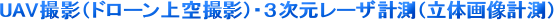 当社は、UAV(ドローン)での上空撮影、3次元レーザースキャナでの地形や構造物の計測、TS(トータルステーションやGNSS(全球測位衛星システム)での地形測量など、所有する機器と技術ノウハウを活用してi-Constructionへの貢献を目指しています。